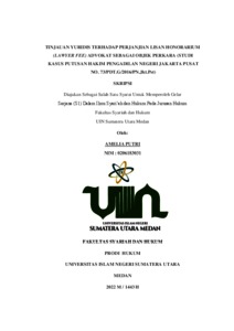Putri, Amelia (2022) Tinjauan Yuridis Terhadap Perjanjian Lisan Honorarium (Lawyer Fee) Advokat Sebagai Objek Perkara (Studi Kasus Putusan Hakim Pengadilan Negeri Jakarta Pusat No.73/Pdt.G./2020/PN.Jkt.Pst). Skripsi thesis, Universitas Islam Negeri Sumatera Utara.