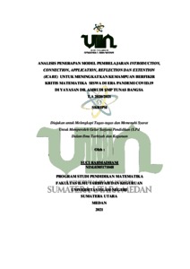 Rahmadhani, Suci (2021) Analisis Penerapan Model Pembelajaran Introduction, Connection, Application, Reflection and Extention (ICARE) Untuk Meningkatkan Kemampuan Berfikir Kritis Matematika Siswa di Era Pandemi Covid.19 di Yayasan DR. Amrudi SMP Tunas Bangsa T.A 2020/2021. Skripsi thesis, Universitas Islam Negeri Sumatera Utara.