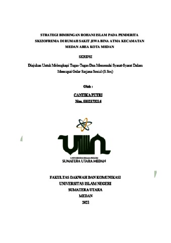 Putri, Cantika (2021) Strategi Bimbingan Rohani Islam Pada Penderita Skizofrenia Di Rumah Sakit Jiwa Bina Atma Kecamtan Medan Area Kota Medan. Skripsi thesis, Universitas Islam Negeri Sumatera Utara.