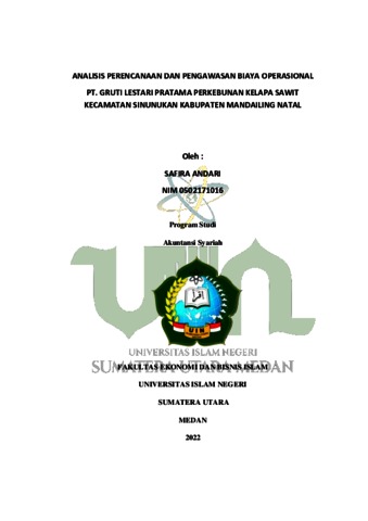 Andari, Safira (2022) Analisis Perencanaan dan Pengawasan Biaya Operasional PT. Gruti Lestari Pratama Kec. Sinunukan Kab. Mandailing Natal. Skripsi thesis, Universitas Islam Negeri Sumatera Utara.