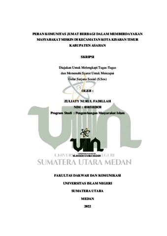 Fadillah, Zuliaty Nurul (2022) Peran Komunitas Jumat Berbagi Dalam Memberdayakan Masyarakat Miskin Di Kecamatan Kota Kisaran Timur Kabupaten Asahan. Skripsi thesis, Universitas Islam Negeri Sumatera Utara.