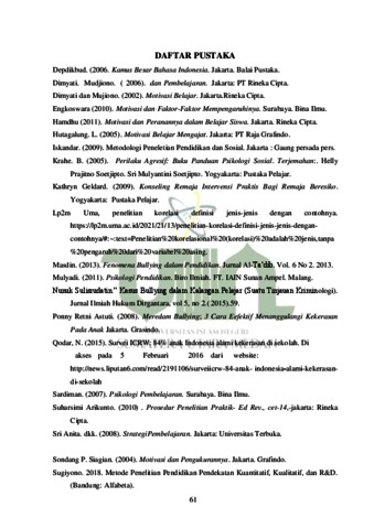 Dzulqodwi, Addinni (2023) Pengaruh Perilaku Bullying Terhadap Motivasi Belajar Siswa di SMP PAB 19 Manunggal Deli Serdang. Skripsi thesis, Universitas Islam Negeri Sumatera Utara.