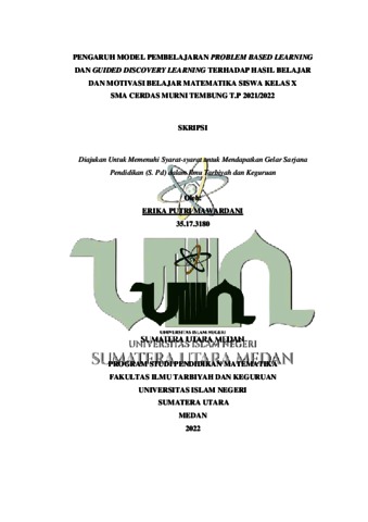 Mawardani, Erika Putri (2022) Pengaruh Model Pembelajaran Problem Based Learning dan Guided Discovery Learning Terhadap Hasil Belajar dan Motivasi Belajar Matematika Siswa Kelas X SMA Cerdas Murni Tembung T.P 2021/2022. Skripsi thesis, Universitas Islam Negeri Sumatera Utara.