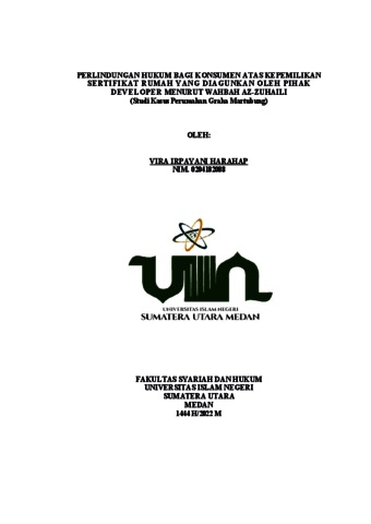 Harahap, Vira Irpayani (2022) Perlindungan Hukum Bagi Konsumen Atas Kepemilikan Sertifikat Rumah Yang Diagunkan Oleh Pihak Developer Menurut Wahbah Az-Zuhaili (Studi Kasus Perumahan Graha Martubung). Skripsi thesis, Universitas Islam Negeri Sumatera Utara.