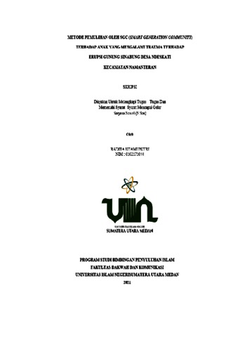 Putri, Radita Utami (2021) Metode Pemulihan Oleh SGC (Smart Generation Community) Terhadap Anak yang Mengalami Trauma Terhaap Erupsi Gunung Sinabung Desa Ndeskati Kecamatan Namanteran. Skripsi thesis, Universitas Islam Negeri Sumatera Utara.