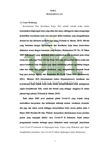Harahap, Dina Oktasafira (2023) Penilaian Penerapan Keselamatan dan Kesehatan Kerja Perkantoran Pada Masa Pandemi COVID-19 di RS Umum Sundari Medan. Skripsi thesis, Universitas Islam Negeri Sumatera Utara.