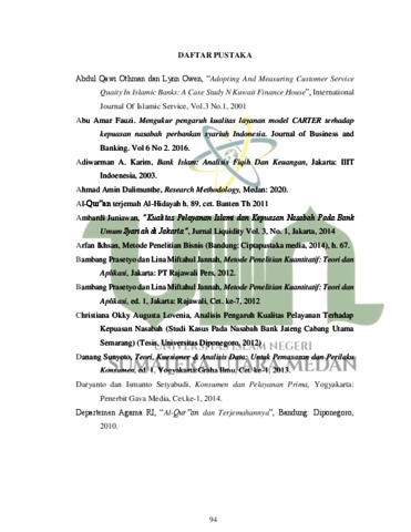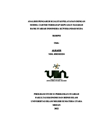 Alhafis, Alhafis (2022) Analisis Pengaruh Kualitas Pelayanan dengan Model Carter Terhadap Kepuasan Nasabah Bank Syariah KCP Iskandar Muda. Skripsi thesis, Universitas Islam Negeri Sumatera Utara.