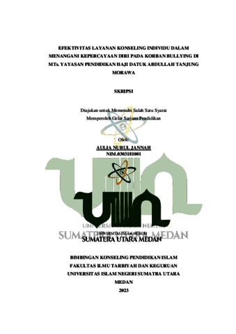 Jannah, Aulia Nurul (2023) Efektivitas Layanan Konseling Individu Dalam Menangani Kepercayaan Diri Pada Korban Bullying di MTs. Yayasan Pendidikan Haji Datuk Abdullah Tanjung Morawa. Post-Doctoral thesis, Universitas Islam Negeri Sumatera Utara.