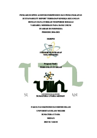 Harahap, Ithohirah (2023) Pengaruh Opini Auditor Independen Dan Pengungkapan Sustainability Report Terhadap Kinerja Keuangan Dengan Dana Syirkah Temporer Sebagai Variabel Moderasi Pada Bank Umum Syariah Di Indonesia Periode 2016-2021. Skripsi thesis, Universitas Islam Negeri Sumatera Utara.