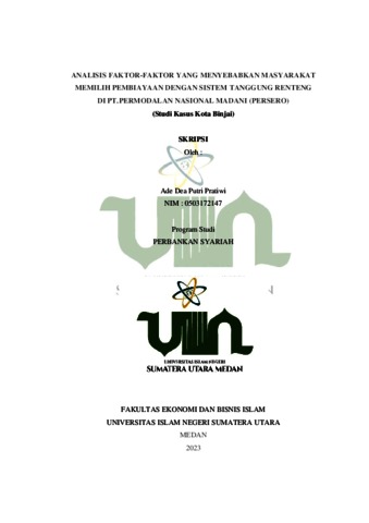 Pratiwi, Ade Dea Putri (2023) Analisis Faktor-Faktor Yang Menyebabkan Masyarakat Memilih Pembiayaan Dengan Sistem Tanggung Renteng Di PT.Permodalan Nasional Madani (Persero) Studi Kasus Kota Binjai. Skripsi thesis, Universitas Islam Negeri Sumatera Utara.