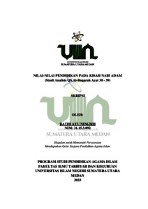 Ningsih, Ratih Ayu (2023) Nilai-nilai pendidikan pada kisah nabi Adam (Studi Analisis QS. Al-Baqarah Ayat 30-39). Skripsi thesis, Universitas Islam Negeri Sumatera Utara Medan.