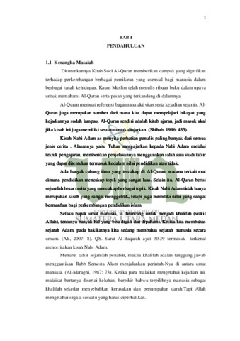 Penelitian ini bertujuan untuk mendeskripsikan nilai-nilai pendidikan yang terdapat dalam kisah Nabi Adam (Studi Analisis QS. Al- Baqarah Ayat 30 – 39). Penelitian ini menggunakan metode kualitatif dengan model studi pustaka. Metode kualitatif adalah suatu penelitian dengan cara deskripsi menggunakan kata-kata dan bahasa pada suatu konteks khusus secara alamiah dengan menggunakan berbagai metode ilmiah dengan tujuan untuk memberi penjelasan melalui studi pustaka. Studi pustaka merupakan studi dokumen artinya sumber datanya berasal dari bahan-bahan yang tertulis dan pembahasannya terkait dengan nilai-nilai pendidikan. Jadi, penelitian ini menjadikan perpustakaan sebagai sumber untuk memperoleh data penelitian. Adapun hasil penelitian ini menunjukkan bahwa: Nilai pendidikan yang terdapat di dalam kisan Nabi Adam as, adalah nilai yang berkaitan dengan perilaku, meliputi a) rendah hati, b) menjauhi sifat sombong, c) menjauhi sifat dengki, dan d) pemaaf. Adapun nilai yang berkaitan dengan tujuan pendidikan, meliputi: a) manusia sebagai ciptaan Allah, b) manusia sebagai makhluk jasmani dan rohani, dan c) manusia sebagai makhluk yang mulia. Kemudian nilai yang berkaitan dengan materi pendidikan, meliputi: a) nilai material, b) nilai sosial kemasyarakatan, c) nilai kecerdasan, d) nilai akhlak, dan e) nilai keagamaan. Sedangkan nilai yang berkaitan dengan metode pembeljaran, meliputi: a) metode kisah, b) metode tanya jawab, c) mengapresiasi pikiran dan perasaan, dan d) metode reward and punishment. Seluruh nilai pendidikan tersebut sangat relevan dengan pendidikan Islam kontemporer dan semua nilai tersebut masih sangat dibutuhkan oleh lembaga pendidikan Islam.