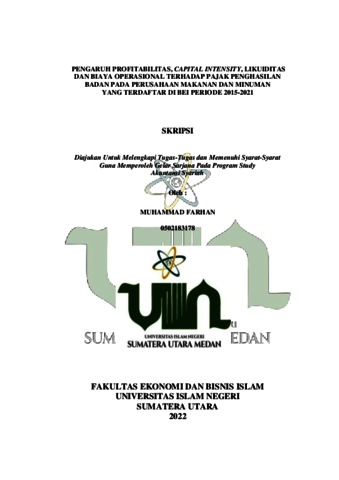Farhan, Muhammad (2022) Pengaruh Profitabilitas, Capital Intensity, Likuiditas dan Biaya Operasional Terhadap Pajak Penghasilan Badan Pada Perusahaan Makanan dan Minuman Yang Terdaftar Di BEI Periode 2015-2021. Skripsi thesis, Universitas Islam Negeri Sumatera Utara.
