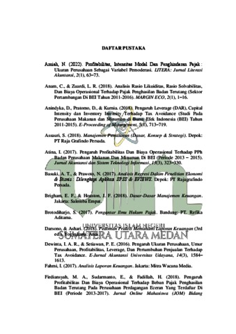 | Uncontrolled Keywords: | Profitabilitas, Capital Intensity, Likuiditas, Biaya Operasional dan Pajak Penghasilan Badan |