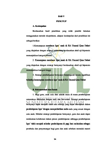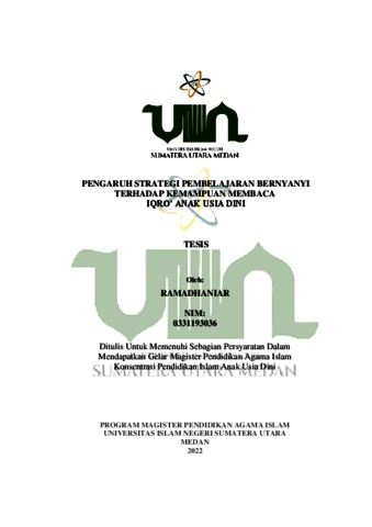Ramadhaniar, Ramadhaniar (2022) Pengaruh Strategi Pembelajaran Bernyanyi Terhadap Kemampuan Membaca Iqro’ Anak Usia Dini. Masters thesis, Universitas Islam Negeri Sumatera Utara.