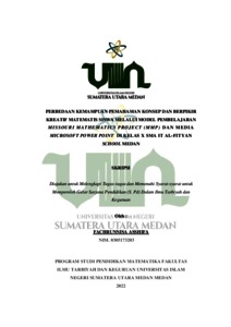 Asshifa, Fachrunnisa (2022) Perbedaan Kemampuan Pemahaman Konsep dan Berpikir Kreatif Matematis Siswa Melalui Model Pembelajaran Missouri Mathematics Project (MMP) dan Media Microsoft Power Point pada Materi Sistem Persamaan Linear Tiga Variabel (SPLTV) di Kelas X SMA IT Al-Fityan School Medan. Skripsi thesis, Universitas Islam Negeri Sumatera Utara Medan.