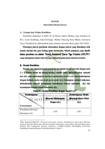 Penelitian ini bertujuan untuk untuk mengetahui 1) Perbedaan kemampuan pemahaman konsep matematis siswa yang diajar menggunakan model pembelajaran missouri mathematics project dengan pembelajaran microsoft power point.2) Perbedaan kemampuan berpikir kreatif matematis siswa yang diajar menggunakan model pembelajaran missouri mathematics project dengan pembelajaran microsoft power point.3) Perbedaan kemampuan pemahaman konsep dan berpikir kreatif matematis siswa yang diajar dengan model pembelajaran missouri mathematics project.4) Perbedaan kemampuan pemahaman konsep dan berpikir kreatif matematis siswa yang diajar menggunakan media pembelajaran microsoft power point. Penelitian ini menggunakan metode kuantitatif, dengan jenis penelitian quasi eksperimen, Populasi pada penelitian ini adalah kelas X-1 dan X-2 di SMA IT Al-Fityan yang berjumlah 20 siswa ditiap masing-masing kelas. Teknik pengambilan sampel yang digunakan oleh peneliti merupakan sampling jenuh, X1 dan X-2 siswa untuk dijadikan kelas eksperimen I dan kelas eksperimen II. Pengumpulan data dilakukan dengan menggunakan instrumen kemampuan pemahaman konsep dan kemampuan berpikir kreatif matematika siswa. Analisis ii data dilakukan dengan analisis varian (ANAVA). Hasil temuan ini menunjukkan: 1) Terdapat perbedaan kemampuan pemahaman konsep matematis siswa yang diajar dengan model pembelajaran Missouri Mathematics Project dan microsoft power point materi pokok SPLTV dengan Fhitung = 22,75 pada taraf (a= 0,05) = 4,08; 2) Terdapat perbedaan kemampuan berpikir kreatif matematis siswa yang diajar dengan model pembelajaran Missouri Mathematics Project dan microsoft power point materi pokok SPLTV dengan Fhitung = 65,42 pada taraf (a= 0,05) = 4,08; 3) Terdapat perbedaan kemampuan pemahaman konsep dan kemampuan berpikir kreatif siswa yang diajarkan dengan menggunakan model pembelajaran Missouri Mathematics Project materi pokok SPLTV dengan Fhitung = 9,42 pada taraf (a= 0,05) = 4,08 ; 4) Terdapat perbedaan kemampuan pemahaman konsep dan berpikir kreatifmatematis siswa yang diajar menggunakan microsoft power point Fhitung = 41,32 pada taraf (a= 0,05) = 4,03. Simpulan penelitian ini menjelaskan bahwa siswa yang memiliki kemampuan pemahaman konsep dan kemampuan berpikir kreatif matematis lebih sesuai diajarkan dengan pembelajaran missouri mathematics project daripada pembelajaran microsoft power point pada materi sistem persamaan linear tiga variabel.