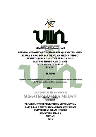 Titania, Lilya (2023) Perbedaan Motivasi Dan Hasil Belajar Matematika Siswa Yang Diajar Dengan Media Video Pembelajaran Dan Alat Peraga Pada Materi Himpunan Di SMP Muhammadiyah 12 Binjai. Skripsi thesis, Universitas Islam Negeri Sumatera Utara.