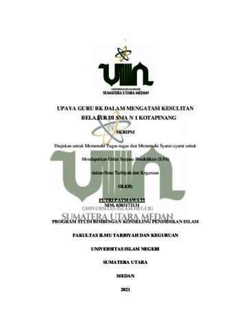 Patmawati, Putri (2021) Upaya Guru BK Dalam Mengatasi Kesulitan Belajar di SMA N 1 Kotapinang. Skripsi thesis, Universitas Islam Negeri Sumatera Utara Medan.