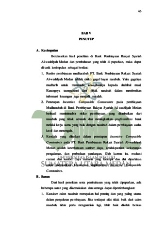 incentive compatible constraints adalah cara-cara untuk mengendalikan informasi asimetrik dalam kontrak mudharabah. Pengendalian ini diterapkan untuk memastikan kebenaran, kontrak bagi hasil dapat memungkinkan pengungkapan yang lebih efisien dari setiap asimetri informasi antara pemimpin dan yang dipinjam.Pembiayaan mudharabah merupakan kegiatan pembiayaan yang sarat dengan risiko dan ciri khas pembiayaan ini menuntut sikap saling percaya yang tinggi antara shahibul maal (bank syari’ah) dan mudharib karena bank akan selalu menghadapi permasalahan assymetric information dan moral hazard. Dalam penelitian ini mangangkat rumusan masal yaitu, bagaimana resiko pembiayaan mudharabah pada PT. Bank Pembiayaan Rakyat Syariah Al-washliyah Medan Bagaimana penetapan Incentive Compatible Constraints dapat menimalisir resiko pembiayaan Mudharabah dari sisi profitabilitas dan apa kendala dalam penetapan Incentive Compatible Constraints. Adapun metode penilitian dalam penelitian ini dengan menggunakan pendekatan kualitatif yang bersifat deskriptif.Pengumpulan data dengan wawancara kepada pihak Bank Pembiayaan Rakyat Syariah Al-washliyah Medan dengan menyertakan dokumentasi. Hasil dari penelitian ini menjelaskan bahwa penetapan Incentive Compatible Constraints dapat menimalisir resiko pembiayaan Mudharabah dari sisi profitabilitas dengan diterapkanny incentive compatible constraints yang dilakukan PT. Bank Pembiayaan Rakyat Syariah Al-washliyah Medan terbukti dapat mencegah kerugian yang ditimbulkan oleh nasabah yang tidak amanah. Hal ini menjadi fakta bahwa PT. Bank Pembiayaan Rakyat Syariah Al-washliyah Medan telah menerapkan incentive compatible constraints dengan baik. Berdasarkan penjelasan tersebut pihak bank memperoleh keuntungan dari hasil kerja sama antara pihak bank dengan nasabah. Kerja sama yang baik kedua belah pihak akan meningkatkan pembiayaan dan meningkatkan profitabilitas.