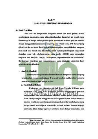 Pengembangan Modul Pembelajarann Matematika Dengan Bantuan Media Aplikasi Berbasis Android Pada Materi Perpangkatan dan Bentuk Akar Kelas IX Di SMP Islam Terpadu Al-Farabi