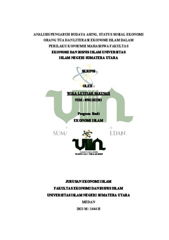Sakinah, Wika Lutfiah (2023) Analisis Pengaruh Budaya Asing, Status Sosial Ekonomi Orang Tua dan Literasi Ekonomi Islam dalam Perilaku Konsumsi Mahasiswa Fakultas Ekonomi dan Bisnis Islam Universitas Islam Negeri Sumatera Utara. Skripsi thesis, Universitas Islam Negeri Sumatera Utara.