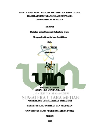 Apriani, Lisa (2023) Identifikasi Minat Belajar Matematika Siswa Dalam Pembelajaran Tatap Muka di SD Swasta Al-Washliyah 11 Medan. Skripsi thesis, Universitas Islam Negeri Sumatera Utara Medan.