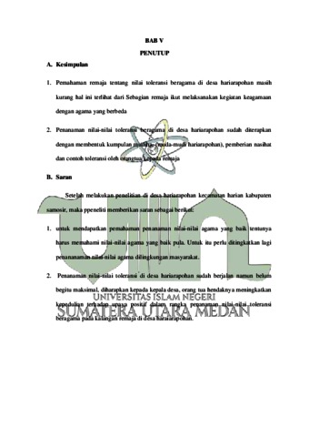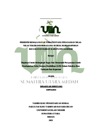 Sihotang, Dinaisyah (2021) Persepsi remaja Batak toba tentang penanaman nilai-nilai toleransi beragama di desa Hariarapohan kecamatan Harian kabupaten Samosir. Skripsi thesis, Universitas Islam Negeri Sumatera Utara Medan.