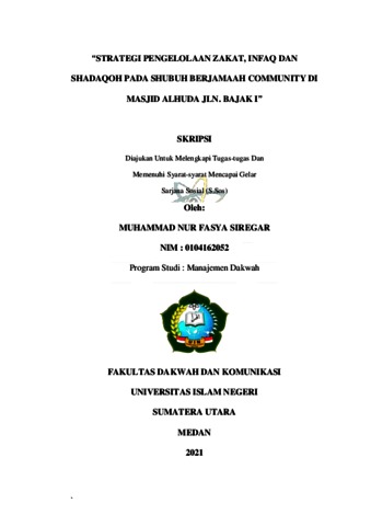 Siregar, Muhammad Nur Fasya (2021) Strategi pengelolaan zakat, infaq dan shadaqoh pada shubuh berjamaah community di Masjid Al-Huda Jln Bajak I. Skripsi thesis, Universitas Islam Negeri Sumatera Utara Medan.