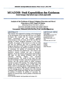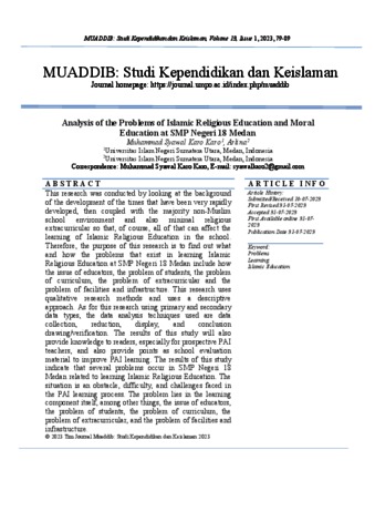 Karo-Karo, Muhammad Syawal and Arlina, Arlina (2023) Analysis Of The Problems Of Islamic Religious Education And Moral Education At SMP Negeri 18 Medan. MUADDIB: Studi Kependidikan dan Keislaman, 13 (1). pp. 79-89.