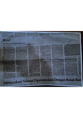Ramadhan, Achmad (2023) Riya'. Waspada. ISSN 0215-3017