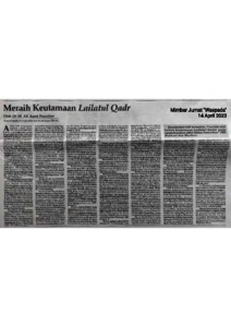 Nasution, M. Ali Azmi (2023) Meraih Keutamaan Lailatul Qadr. Waspada. ISSN 0215-3017