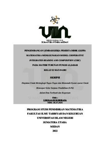 Berasa, Umi Kalsum (2022) Pengembangan Lembar Kerja Peserta Didik (LKPD) Matematika Menggunakan Model Cooperative Integrated Reading And Composition (CIRC) pada Materi Turunan Fungsi Aljabar Kelas XI MAN Dairi. Skripsi thesis, Universitas Islam Negeri Sumatera Utara Medan.