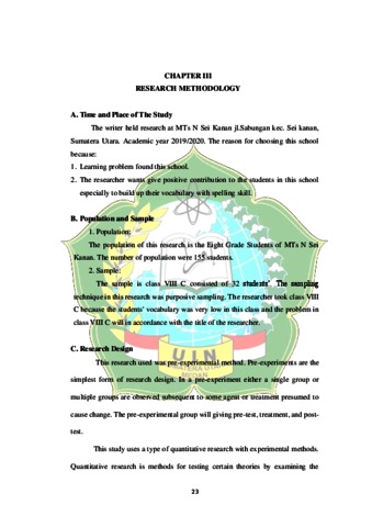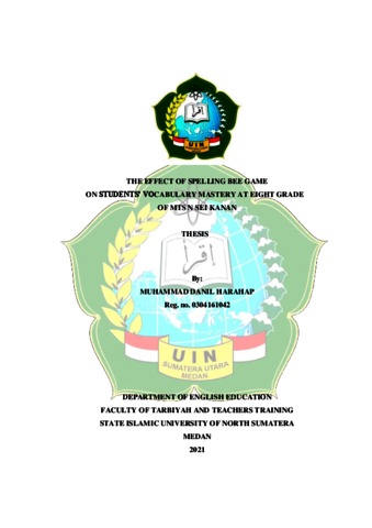 Harahap, Muhammad Danil (2021) The Effect of Spelling Bee Game on Students Vocabulary Mastery at Eight Grade of MTs N Sei Kanan. Skripsi thesis, Universitas Islam Negeri Sumatera Utara Medan.
