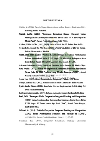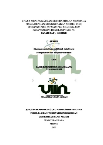 Sitanggang, Sahri Rahmadana (2023) Upaya Meningkatkan Keterampilan Membaca Siswa dengan Menggunakan Model CIRC (Cooperative Integrated Reading and Composition) di Kelas IV MIS NU Pasar Batu Gerigis. Skripsi thesis, Universitas Islam Negeri Sumatera Utara Medan.