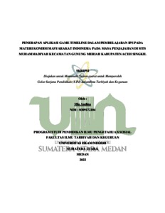 Audina, Mia (2022) Penerapan Aplikasi Game Timeline dalam Pembelajaran IPS pada Materi Kondisi Masyarakat Indonesia pada Masa Penjajahan di MTs Muhammadiyah Kecamatan Gunung Meriah Kabupaten Aceh Singkil. Skripsi thesis, Universitas Islam Negeri Sumatera Utara Medan.