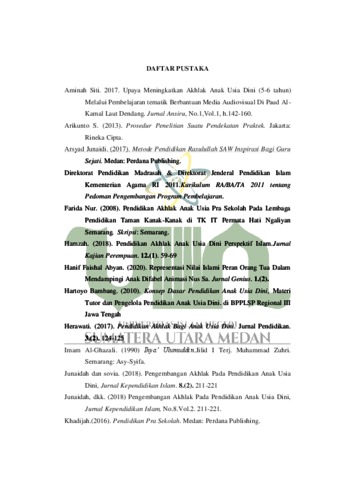 Kartika, Sitta (2022) Pendidikan Akhlak Anak Usia 5-6 Tahun di Lingkungan Keluarga Dusun III Desa Durin Simbelang Kecamatan Pancur Batu. Skripsi thesis, Universitas Islam Negeri Sumatera Utara Medan.