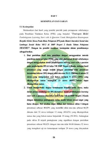 Naimah, Asha (2021) Penerapan Model Pembelajaran Learning Start With A Question (LSQ) untuk Meningkatkan Kemampuan Berpikir Kritis Siswa Pada Mata Pelajaran IPS Materi Interaksi Sosial dan Lembaga Sosial Kelas VII-2 di SMP Negeri 2 Kuala T.P. 2021/2022. Skripsi thesis, Universitas Islam Negeri Sumatera Utara Medan.