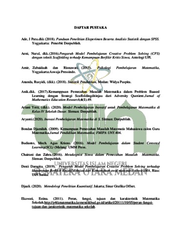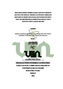 Pratiwi, Ana (2022) Pengaruh Model Pembelajaran Creative Problem Solving (CPS) dengan Teknik Scaffolding terhadap Kemampuan Pemecahan Masalah Matematis Siswa pada Materi Program Linier di MAS Binaul Iman Siantar Tahun Ajaran 2021-2022. Skripsi thesis, Universitas Islam Negeri Sumatera Utara Medan.