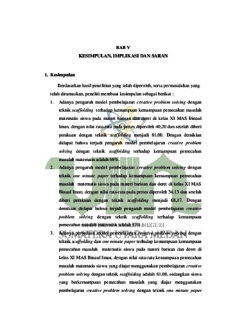 Uncontrolled Keywords: Creative Problem Solving (CPS), Teknik Scaffolding, Kemampuan Pemecahan Masalah Matematis