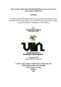 Rahman, Khofifah Indar (2021) Nilai-nilai Religius Kepemimpinan dalam Agama Islam dan Kristen. Skripsi thesis, Universitas Islam Negeri Sumatera Utara Medan.