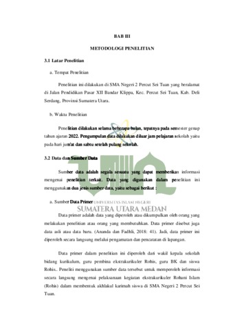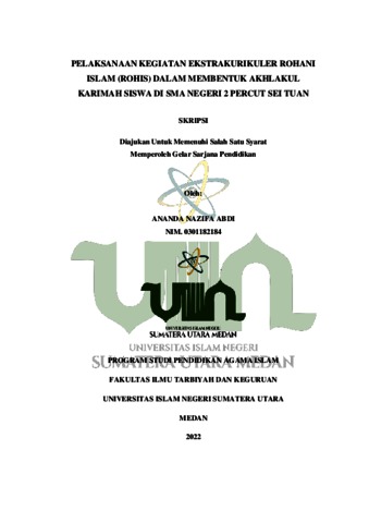 Abdi, Ananda Nazifa (2022) Pelaksanaan Kegiatan Ekstrakurikuler Rohani Islam (Rohis) Dalam Membentuk Akhlakul Karimah Siswa di SMA Negeri 2 Percut Sei Tuan. Skripsi thesis, Universitas Islam Negeri Sumatera Utara Medan.
