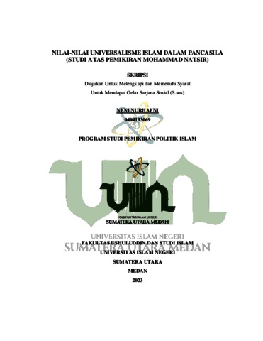 Nurhafni, Neni (2023) Nilai- Nilai Universalisme Islam dalam Pancasila (Studi atas Pemikiran Mohammad Natsir). Skripsi thesis, Universitas Islam Negeri Sumatera Utara Medan.
