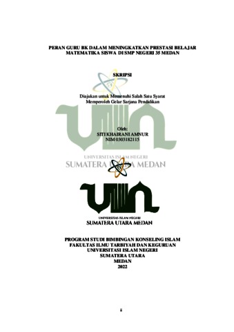 Amnur, Siti Khairani (2022) Peran guru BK dalam meningkatkan prestasi belajar matematika siswa di SMP Negri 35 Medan. Skripsi thesis, Universitas Islam Negeri Sumatera Utara Medan.