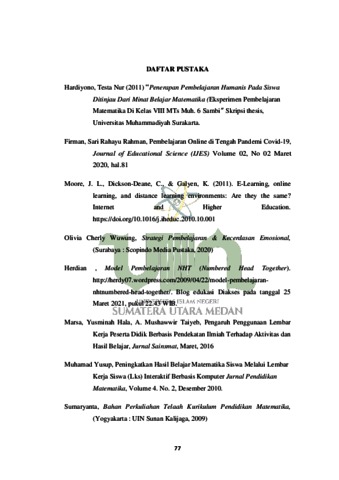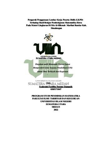 Damanik, Syahroini Faridha Tunnur (2022) Pengaruh Penggunaan Lembar Kerja Peserta Didik (LKPD) terhadap Hasil Belajar Pembelajaran Matematika Siswa pada Materi Lingkaran di MTs Al-Hikmah Marihat Bandar Kab. Simalungun. Skripsi thesis, Universitas Islam Negeri Sumatera Utara Medan.