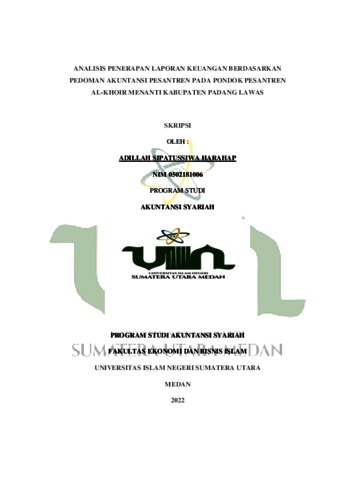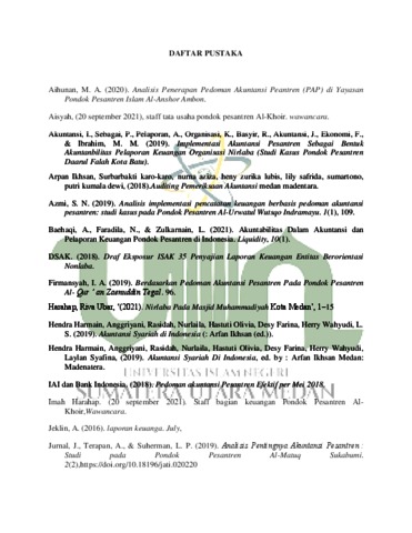 Harahap, Adillah Sipatussiwa (2022) Analisis Penerapan Laporan Keuangan Berdasarkan Pedoman Akuntansi Pesantren Pada Pondok Pesantren AlKhoir Menanti Kabupaten Padang Lawas”. Skripsi thesis, Universitas Islam Negeri Sumatera Utara Medan.