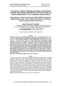 Pengembangan Lembar Kerja Peserta Didik (LKPD) Pembelajaran Biologi Berbasis Higher Order Thinking Skill (HOTS) Pada Materi Sistem Pernapasan Kelas XI SMA/MA