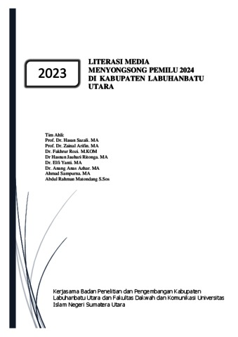 Sazali, Hasan and Arifin, Zainal and Rozi, Fakhrur and Ritonga, Hasnun Jauhari and Yanti, Elfi and Azhar, Anang Anas and Sampurna, Ahmad and Matondang, Abdul Rahman (2023) Literasi Media Menyongsong Pemilu 2024 Di Kabupaten Labuhanbatu Utara. Kerjasama Badan Penelitian dan Pengembangan Kabupaten Labuhanbatu Utara dan Fakultas Dakwah dan Komunikasi Universitas Islam Negeri Sumatera Utara.