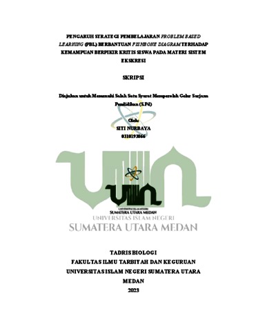 NURBAYA, SITI (2023) Pengaruh Strategi Pembelajaran Problem Based Learning (Pbl) Berbantuan Fishbone Diagram Terhadap Kemampuan Berpikir Kritis Siswa Pada Materi Sistem Ekskresi. Skripsi thesis, universitas islam negeri sumatra utara.