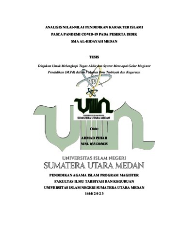 Pihar, Ahmad (2023) Analisis Nilai-nilai Pendidikan Karakter Islami pasca Pandemi Covid-19 pada Peserta Didik SMA Al-Hidayah Medan. Skripsi thesis, Universitas Islam Negeri Sumatera Utara Medan.